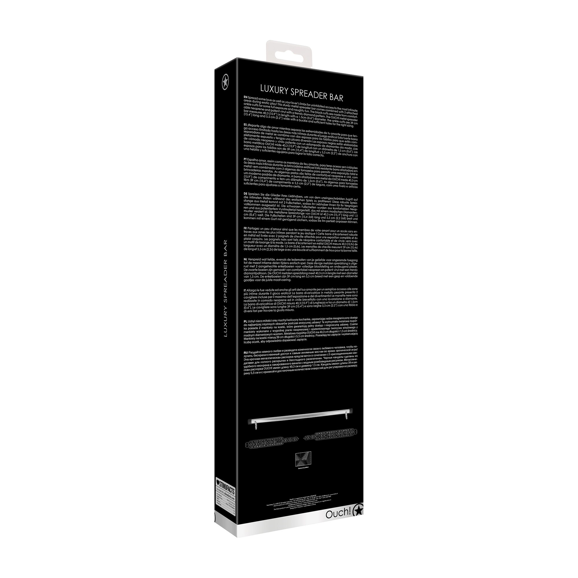 ¡Difunda un poco de amor y también las extremidades de su amante para un acceso sin inhibiciones a las áreas más íntimas durante los juegos eróticos! Esta resistente barra separadora de metal viene combinada con 2 esposas de tobillos para una exposición total y diversión traviesa. Las esposas negras están hechas de cómodo neopreno y vinilo de charol con un moderno patrón de diamantes. La barra separadora de metal ¡OUCH! mide 40,3 de longitud con un diámetro de 1,5 cm. Las esposas de los tobillos miden 39 cm de largo y 5,5 cm de ancho con una hebilla y agujeros suficientes para ajustar a la talla correcta.