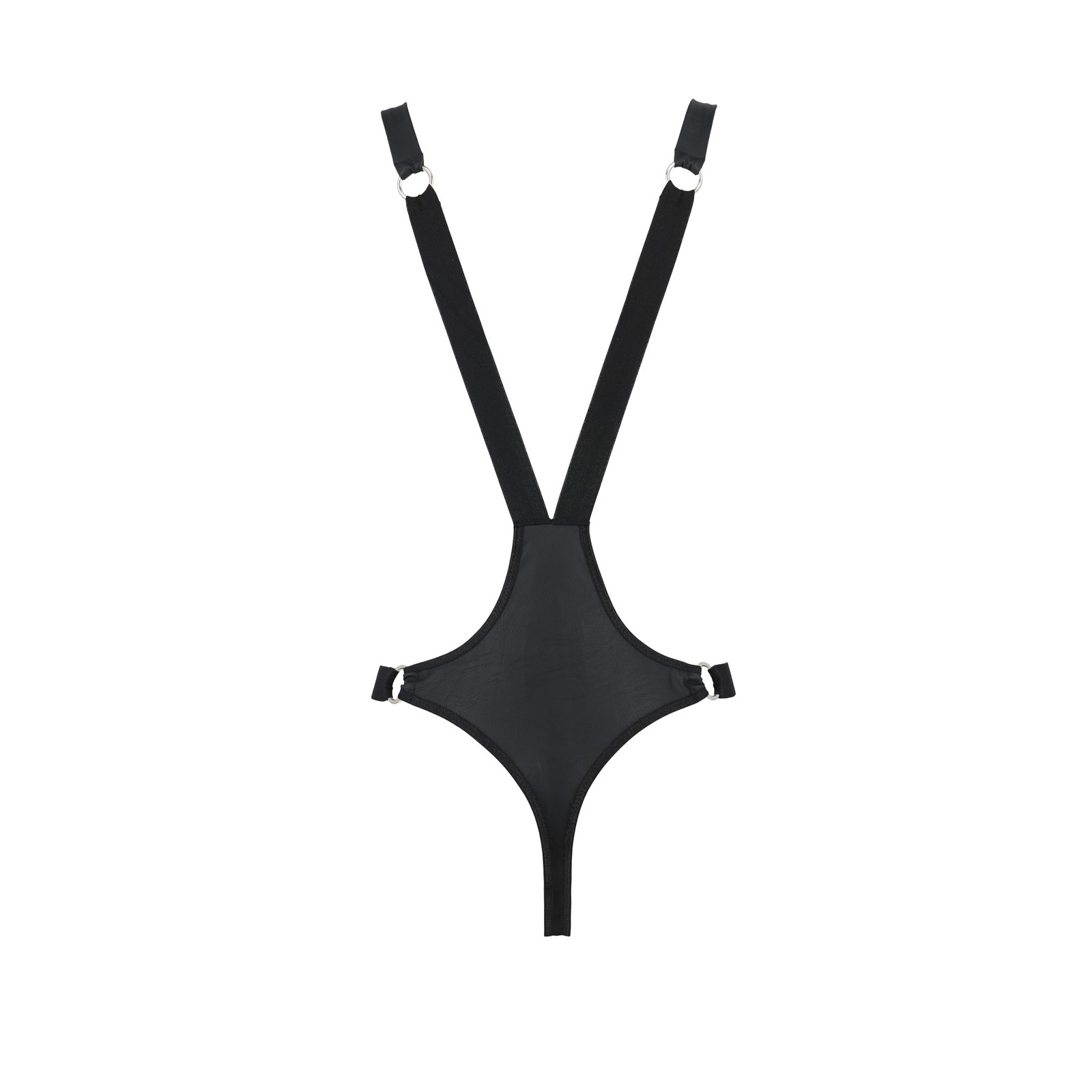 Elige el body Harry de cuero ecológico negro. Unos cómodos tirantes sobre elástico, un seductor tanga que deja al descubierto tus nalgas y un acabado remachado hacen que este body sea atrevido y cómodo al mismo tiempo.