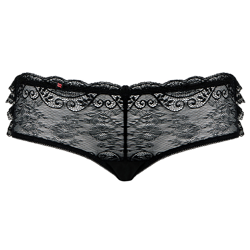 Siéntase como una bailarina en el famoso Moulin Rouge con esta romántica braguita. Hechas en encaje elástico, con bordado floral delante y en la parte de tras suaves volantes con un lazo para finalizar. Vista sensualidad y originalidad, dejándolo loco de deseo. Este producto es de la marca OBSESSIVE, una marca líder, llena de erotismo y sensualidad con modelos únicos que enaltecen aún más el cuerpo de las mujeres.