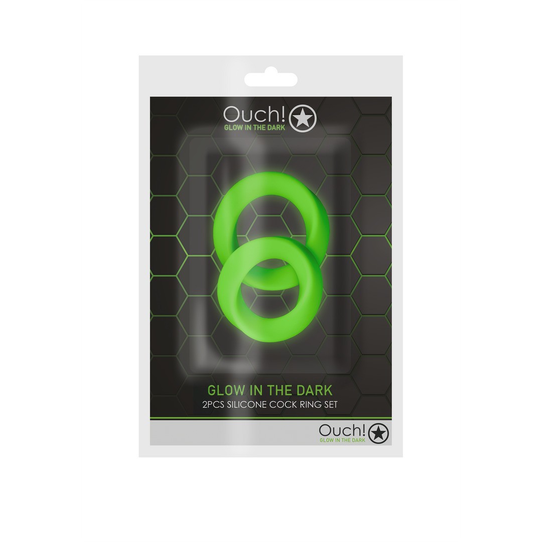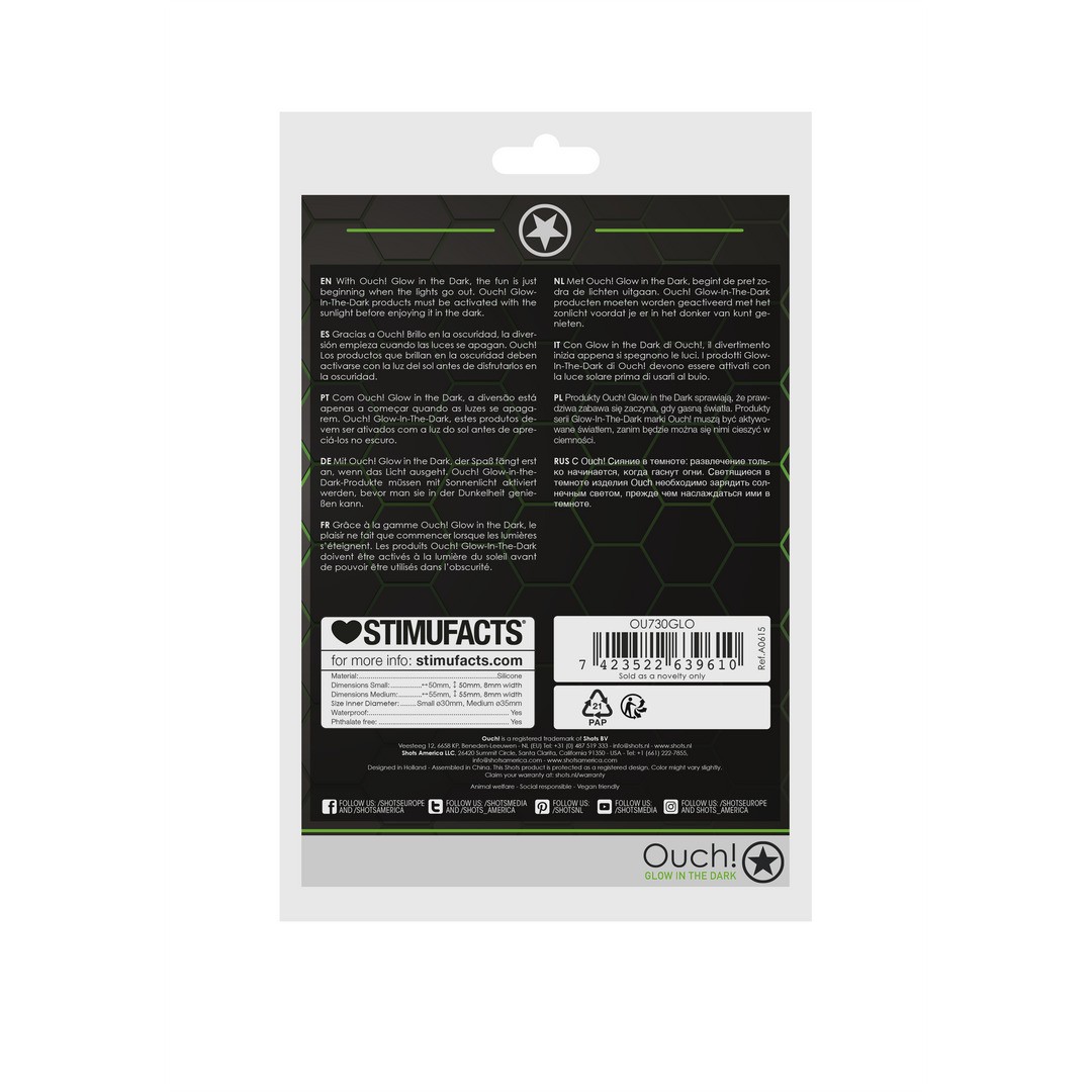 Con Ouch! Glow in the Dark, la diversión no hace más que empezar cuando se apagan las luces. Este conjunto de anillos para el pene contiene anillos de dos tamaños que son cómodos y elásticos.
