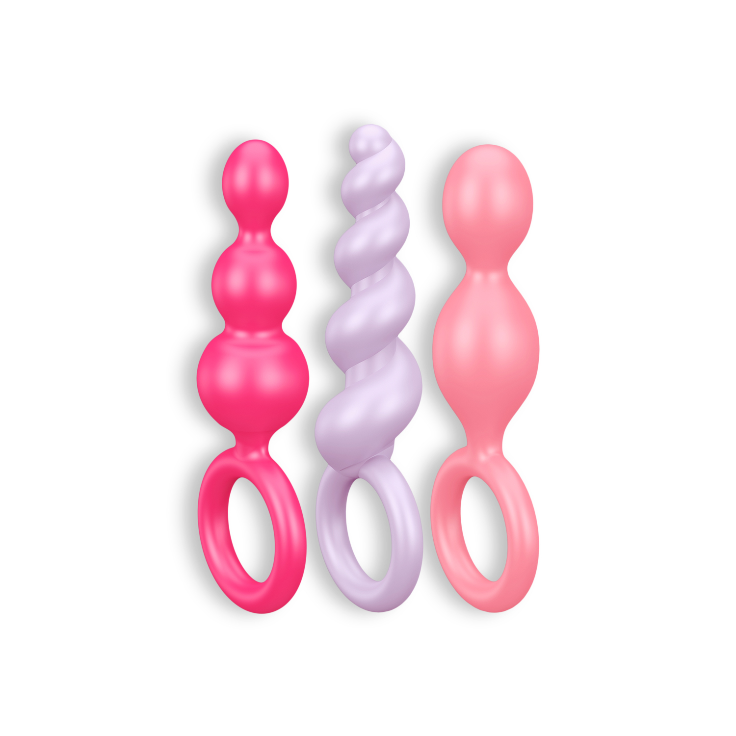 Con 3 estructuras diferentes, el juego Booty Call de Satisfyer es ideal para principiantes en el entrenamiento anal. Los plugs anales ofrecen un diámetro creciente, para que el ano se estire suavemente y, así, pueda abrirse paso con toda prudencia. Es difícil superar los plugs en cuanto a versatilidad: se puede elegir entre el diseño de espiral retorcida, la forma cónica estrecha y la clásica estructura esférica con 3 elementos.