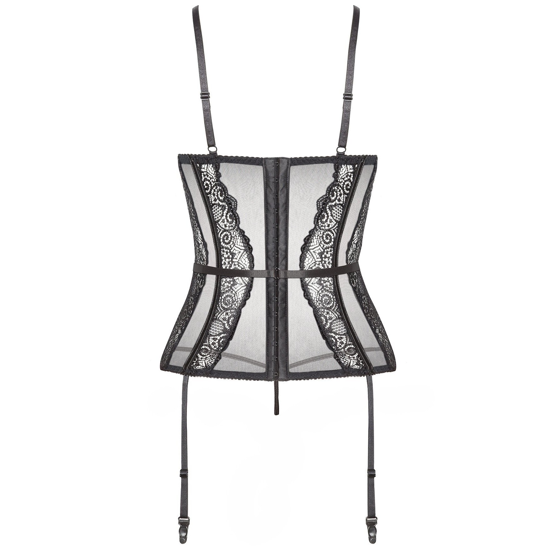 Haz que tu velada sea inolvidable con el corsé de encaje Ravenna en negro. Confeccionado en encaje negro y tul, este sensual corsé acentúa la silueta femenina, añadiendo un toque de elegancia y sex appeal. Perfecto para ocasiones especiales o veladas románticas para dos.