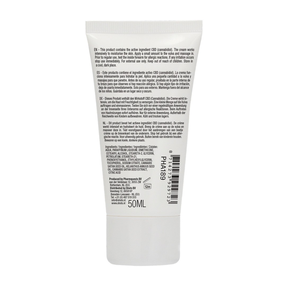 Este producto contiene el principio activo CBD (cannabidiol). La crema hidrata intensamente la piel. Esta crema está dermatológicamente probada, es 100% segura para el cuerpo, inodora e insípida.