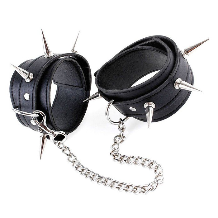 El kit bondage que tanto tiene aguardado. No deje huir el amor y use las excitantes esposas para muñecas o tobillos, mantenga el misterio con el antifaz, y pongále el collar a su sumiso. Muestre quien manda, usando este sofisticado látigo. Los picos metálicos dan un look más audaz además de estimular aún más.