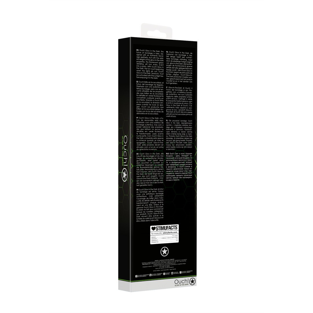 Con Ouch! Glow in the Dark, la magia sucede cuando se apagan las luces. Para obtener un deslumbrante efecto luminoso, basta con exponer el látigo a la luz del sol antes de cada uso.