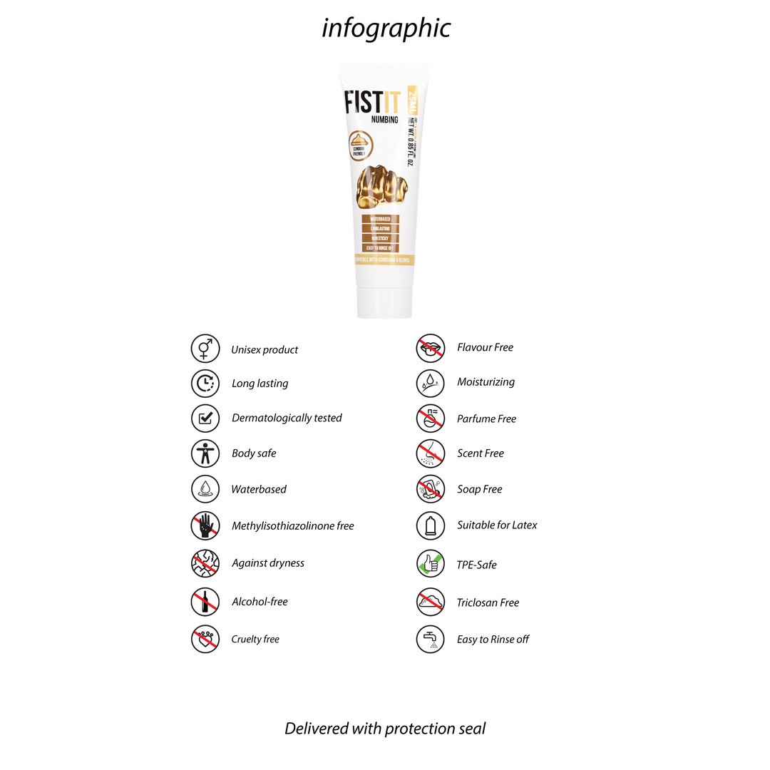 Si quieres llevar tu juego con juguetes sexuales y el sexo anal al siguiente nivel, entonces el lubricante para fisting FIST IT NUMBING es perfecto para el trabajo. Dermatológicamente probado y compatible con preservativos de látex.