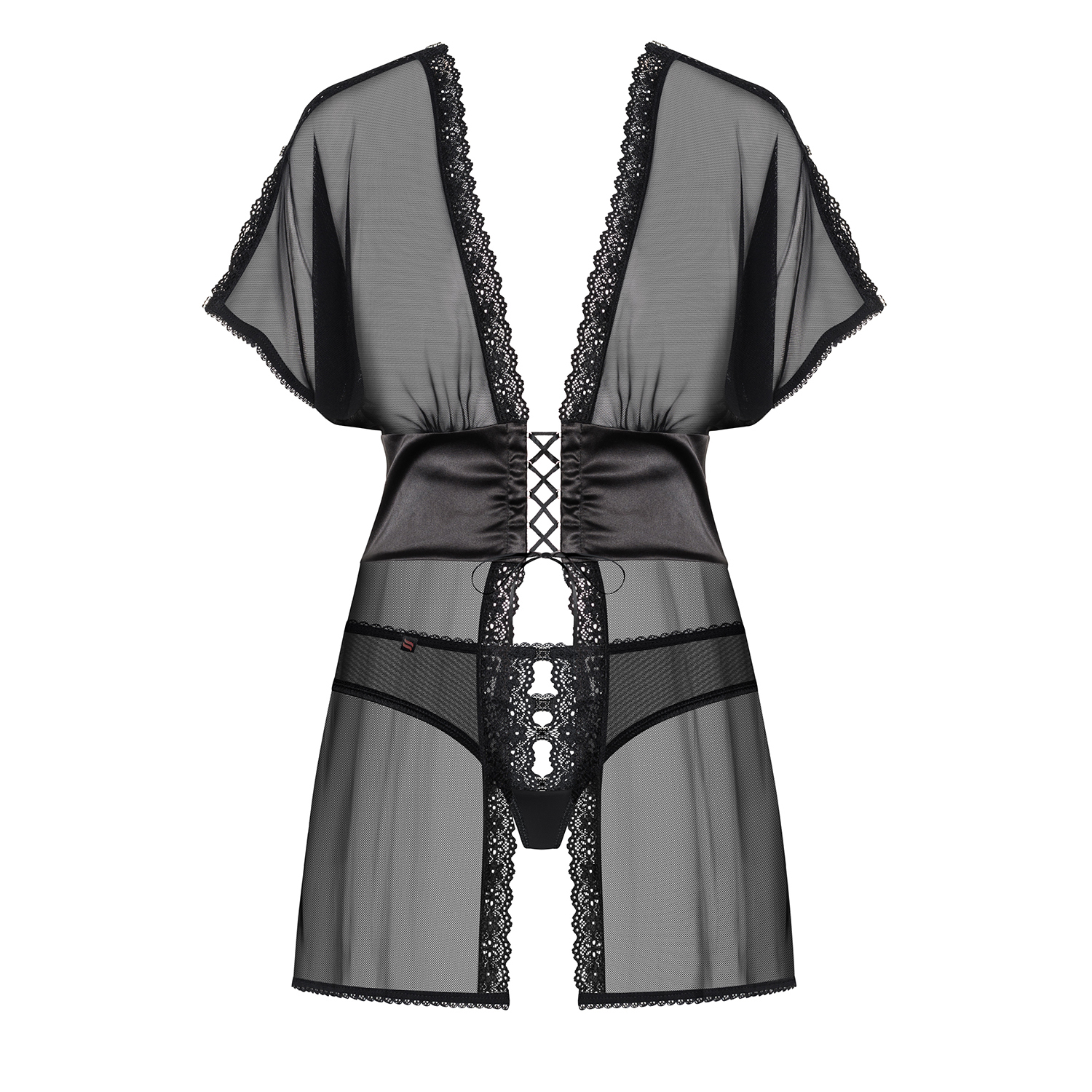 Apele a su sensualidad con esta picardía traslúcida con bellísimos detalles en encaje y satén. Ajústela perfectamente a sus curvas a través de la delicada cinta de satén. Incluye tanga a juego. Este producto es de la marca OBSESSIVE, una marca líder, llena de erotismo y sensualidad con modelos únicos que enaltecen aún más el cuerpo de las mujeres.