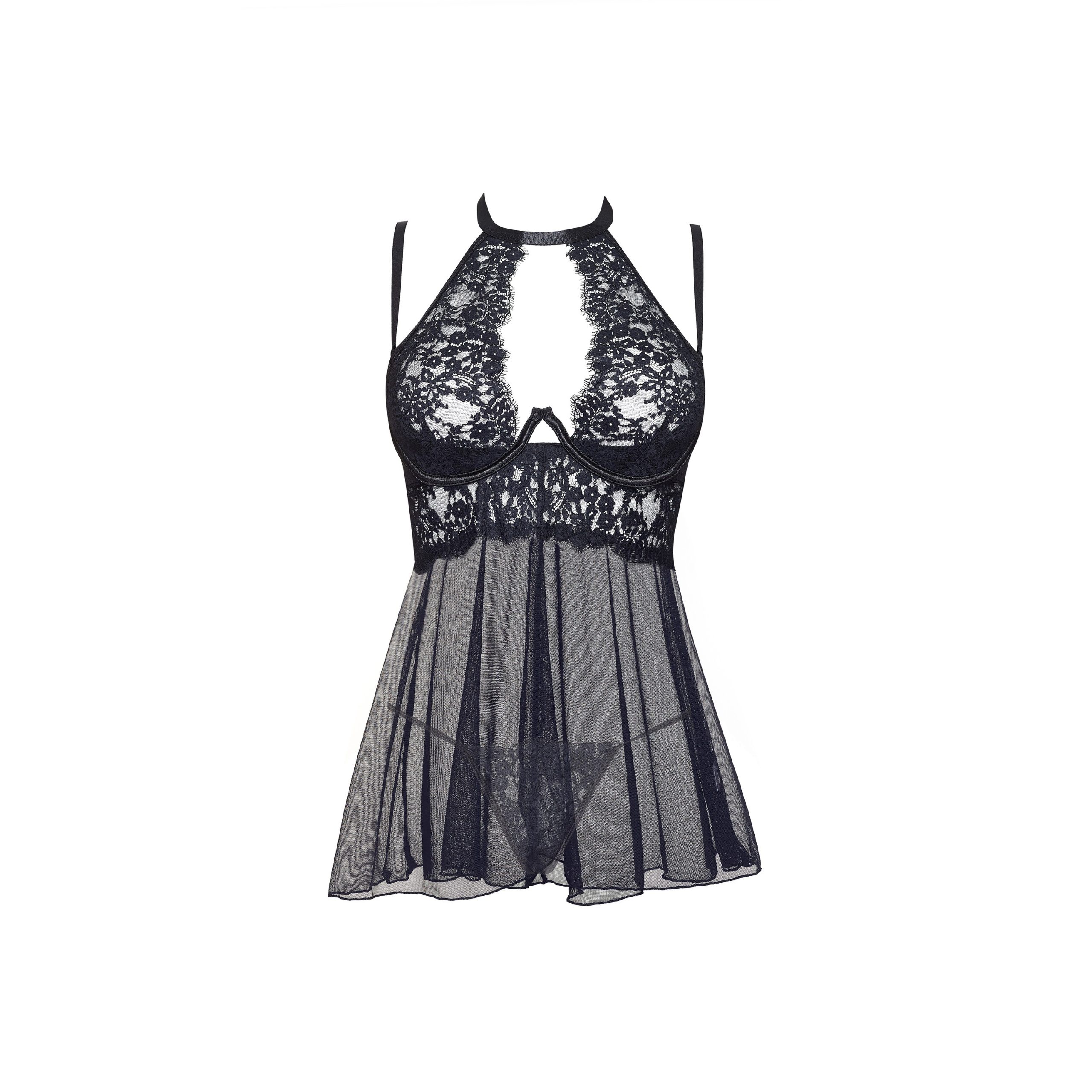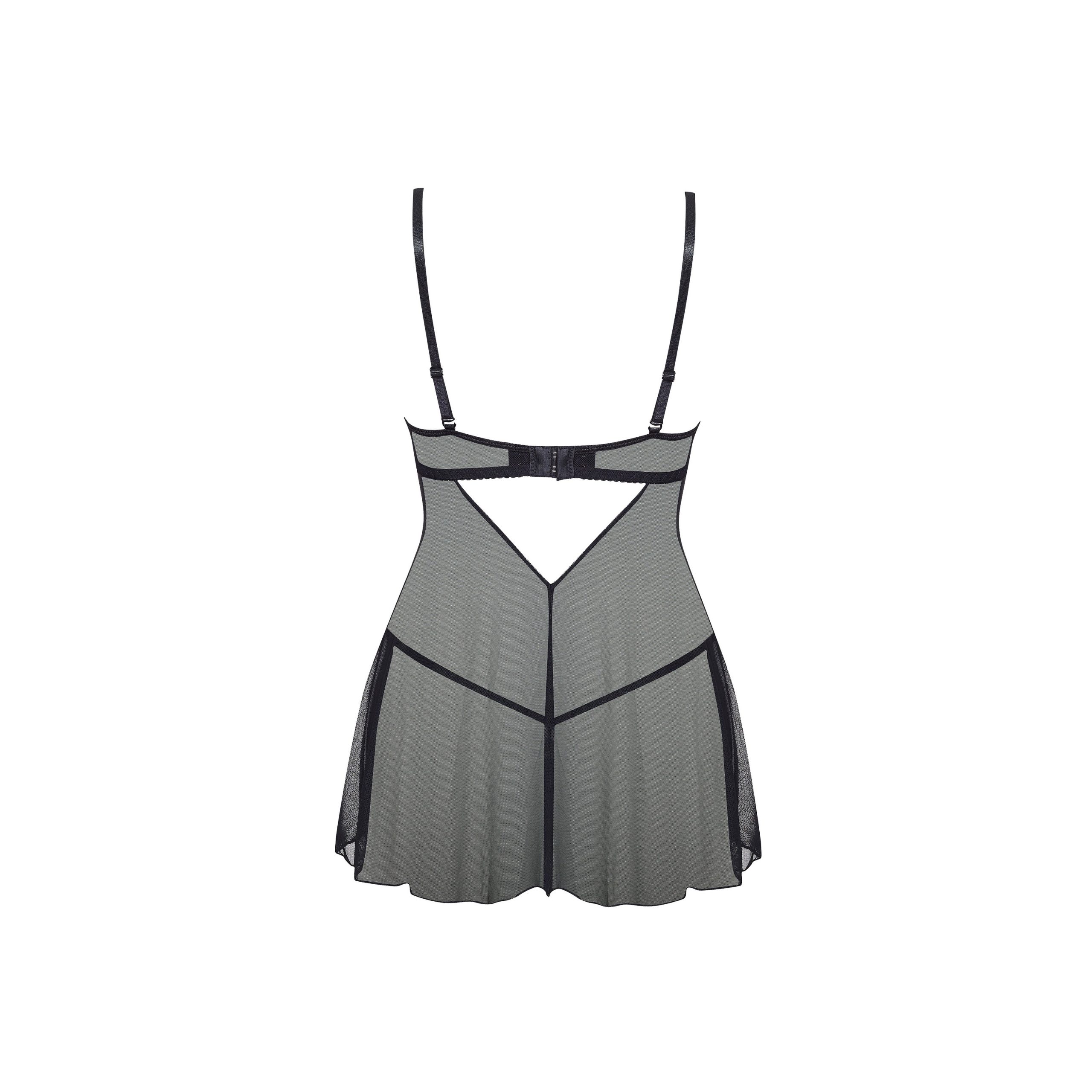 La elegante picardía Mariana en negro es la elección perfecta para cualquier mujer que desee sentirse especial y sensual. Este modelo combina la delicadeza del encaje y la finura del tul, creando un efecto extremadamente femenino y seductor.
