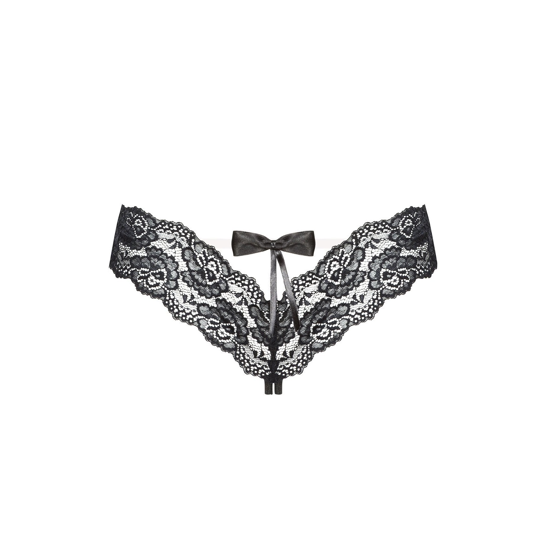 El tanga Selina es una mezcla única de elegancia y sensualidad. La parte delantera y trasera es de delicado encaje, unida por una tira de silicona transparente, que garantiza un ajuste perfecto al cuerpo. La tira delantera está adornada con un encantador lazo, que confiere al tanga un carácter distintivo.